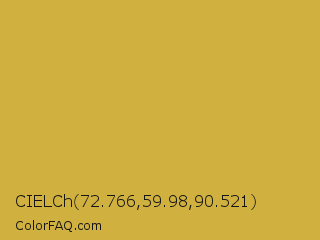 CIELCh 72.766,59.98,90.521 Color is a normal yellow color and the nearest color is Old Gold #cfb53b. Hex code #d0b03e and RGB value is rgb(208,176,62). In RGB color space, this color is composed of 82% red, 69% green, 24% blue, In CMYK color space, this color is composed of 0% cyan, 15% magenta, 70% yellow , 18% black , In HSL color space, this color has a hue angle of 47° , 61% saturation and 53% lightness.