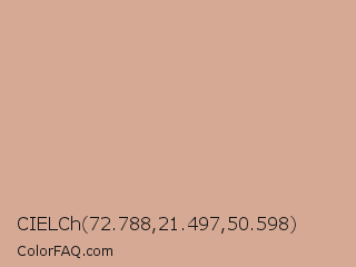CIELCh 72.788,21.497,50.598 Color is a light orange color and the nearest color is Eunry #cfa39d. Hex code #d6a995 and RGB value is rgb(214,169,149). In RGB color space, this color is composed of 84% red, 66% green, 58% blue, In CMYK color space, this color is composed of 0% cyan, 21% magenta, 30% yellow , 16% black , In HSL color space, this color has a hue angle of 18° , 44% saturation and 71% lightness.