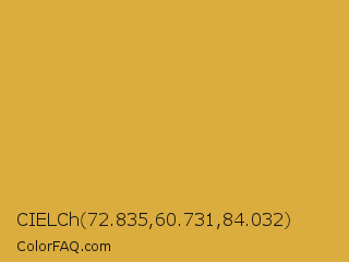 CIELCh 72.835,60.731,84.032 Color is a normal orange color and the nearest color is Gold Metallic #d4af37. Hex code #dbac3e and RGB value is rgb(219,172,62). In RGB color space, this color is composed of 86% red, 67% green, 24% blue, In CMYK color space, this color is composed of 0% cyan, 21% magenta, 72% yellow , 14% black , In HSL color space, this color has a hue angle of 42° , 69% saturation and 55% lightness.