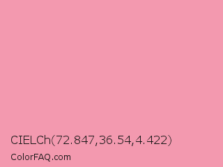 CIELCh 72.847,36.54,4.422 Color is a light red color and the nearest color is Wewak #f19bab. Hex code #f399af and RGB value is rgb(243,153,175). In RGB color space, this color is composed of 95% red, 60% green, 69% blue, In CMYK color space, this color is composed of 0% cyan, 37% magenta, 28% yellow , 5% black , In HSL color space, this color has a hue angle of 345° , 79% saturation and 78% lightness.