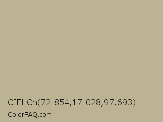CIELCh 72.854,17.028,97.693 Color is a light yellow color and the nearest color is Heathered Gray #b6b095. Hex code #bbb394 and RGB value is rgb(187,179,148). In RGB color space, this color is composed of 73% red, 70% green, 58% blue, In CMYK color space, this color is composed of 0% cyan, 4% magenta, 21% yellow , 27% black , In HSL color space, this color has a hue angle of 48° , 22% saturation and 66% lightness.