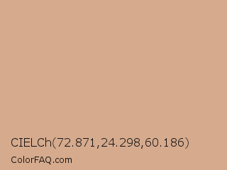 CIELCh 72.871,24.298,60.186 Color is a light orange color and the nearest color is Tumbleweed #deaa88. Hex code #d6aa8d and RGB value is rgb(214,170,141). In RGB color space, this color is composed of 84% red, 67% green, 55% blue, In CMYK color space, this color is composed of 0% cyan, 21% magenta, 34% yellow , 16% black , In HSL color space, this color has a hue angle of 24° , 47% saturation and 70% lightness.