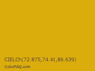 CIELCh 72.875,74.41,86.639 Color is a normal yellow color and the nearest color is Galliano #dcb20c. Hex code #dbad0c and RGB value is rgb(219,173,12). In RGB color space, this color is composed of 86% red, 68% green, 5% blue, In CMYK color space, this color is composed of 0% cyan, 21% magenta, 95% yellow , 14% black , In HSL color space, this color has a hue angle of 47° , 90% saturation and 45% lightness.