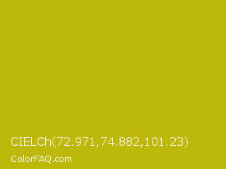 CIELCh 72.971,74.882,101.23 Color is a normal yellow color and the nearest color is La Rioja #b3c110. Hex code #bdb809 and RGB value is rgb(189,184,9). In RGB color space, this color is composed of 74% red, 72% green, 4% blue, In CMYK color space, this color is composed of 0% cyan, 3% magenta, 95% yellow , 26% black , In HSL color space, this color has a hue angle of 58° , 91% saturation and 39% lightness.
