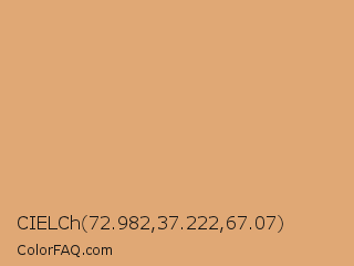 CIELCh 72.982,37.222,67.07 Color is a light orange color and the nearest color is Fawn #e5aa70. Hex code #e0a875 and RGB value is rgb(224,168,117). In RGB color space, this color is composed of 88% red, 66% green, 46% blue, In CMYK color space, this color is composed of 0% cyan, 25% magenta, 48% yellow , 12% black , In HSL color space, this color has a hue angle of 29° , 63% saturation and 67% lightness.