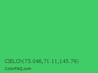 CIELCh 73.046,71.11,145.79 Color is a normal green color and the nearest color is UFO Green #3cd070. Hex code #40cc66 and RGB value is rgb(64,204,102). In RGB color space, this color is composed of 25% red, 80% green, 40% blue, In CMYK color space, this color is composed of 69% cyan, 0% magenta, 50% yellow , 20% black , In HSL color space, this color has a hue angle of 136° , 58% saturation and 53% lightness.