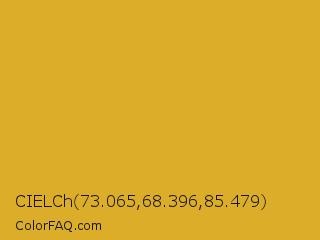 CIELCh 73.065,68.396,85.479 Color is a normal orange color and the nearest color is Urobilin #e1ad21. Hex code #dcad29 and RGB value is rgb(220,173,41). In RGB color space, this color is composed of 86% red, 68% green, 16% blue, In CMYK color space, this color is composed of 0% cyan, 21% magenta, 81% yellow , 14% black , In HSL color space, this color has a hue angle of 44° , 72% saturation and 51% lightness.
