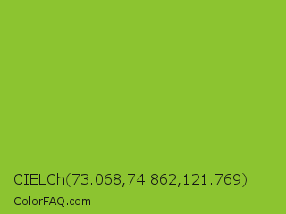 CIELCh 73.068,74.862,121.769 Color is a normal green color and the nearest color is Atlantis #97cd2d. Hex code #8cc430 and RGB value is rgb(140,196,48). In RGB color space, this color is composed of 55% red, 77% green, 19% blue, In CMYK color space, this color is composed of 29% cyan, 0% magenta, 76% yellow , 23% black , In HSL color space, this color has a hue angle of 83° , 61% saturation and 48% lightness.