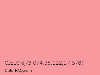 CIELCh 73.074,38.122,17.578 Color is a light red color and the nearest color is Sweet Pink #fd9fa2. Hex code #f899a0 and RGB value is rgb(248,153,160). In RGB color space, this color is composed of 97% red, 60% green, 63% blue, In CMYK color space, this color is composed of 0% cyan, 38% magenta, 35% yellow , 3% black , In HSL color space, this color has a hue angle of 356° , 87% saturation and 79% lightness.