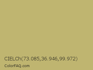 CIELCh 73.085,36.946,99.972 Color is a normal yellow color and the nearest color is Dark Khaki #bdb76b. Hex code #bfb570 and RGB value is rgb(191,181,112). In RGB color space, this color is composed of 75% red, 71% green, 44% blue, In CMYK color space, this color is composed of 0% cyan, 5% magenta, 41% yellow , 25% black , In HSL color space, this color has a hue angle of 52° , 38% saturation and 59% lightness.