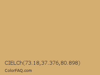 CIELCh 73.18,37.376,80.898 Color is a light orange color and the nearest color is Laser #c8b568. Hex code #d4ae70 and RGB value is rgb(212,174,112). In RGB color space, this color is composed of 83% red, 68% green, 44% blue, In CMYK color space, this color is composed of 0% cyan, 18% magenta, 47% yellow , 17% black , In HSL color space, this color has a hue angle of 37° , 54% saturation and 64% lightness.