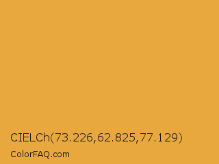 CIELCh 73.226,62.825,77.129 Color is a normal orange color and the nearest color is Tulip Tree #eab33b. Hex code #e8a83e and RGB value is rgb(232,168,62). In RGB color space, this color is composed of 91% red, 66% green, 24% blue, In CMYK color space, this color is composed of 0% cyan, 28% magenta, 73% yellow , 9% black , In HSL color space, this color has a hue angle of 37° , 79% saturation and 58% lightness.