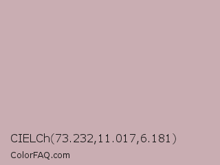 CIELCh 73.232,11.017,6.181 Color is a light red color and the nearest color is Silver Pink #c4aead. Hex code #c9adb2 and RGB value is rgb(201,173,178). In RGB color space, this color is composed of 79% red, 68% green, 70% blue, In CMYK color space, this color is composed of 0% cyan, 14% magenta, 11% yellow , 21% black , In HSL color space, this color has a hue angle of 349° , 21% saturation and 73% lightness.