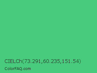 CIELCh 73.291,60.235,151.54 Color is a normal green color and the nearest color is Emerald #50c878. Hex code #49cb7d and RGB value is rgb(73,203,125). In RGB color space, this color is composed of 29% red, 80% green, 49% blue, In CMYK color space, this color is composed of 64% cyan, 0% magenta, 38% yellow , 20% black , In HSL color space, this color has a hue angle of 144° , 56% saturation and 54% lightness.