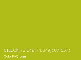 CIELCh 73.348,74.349,107.557 Color is a normal yellow color and the nearest color is Acid Green #b0bf1a. Hex code #b0bd19 and RGB value is rgb(176,189,25). In RGB color space, this color is composed of 69% red, 74% green, 10% blue, In CMYK color space, this color is composed of 7% cyan, 0% magenta, 87% yellow , 26% black , In HSL color space, this color has a hue angle of 65° , 77% saturation and 42% lightness.