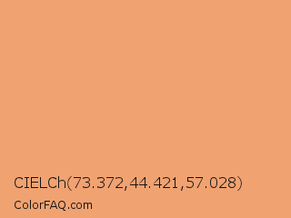 CIELCh 73.372,44.421,57.028 Color is a light orange color and the nearest color is Fawn #e5aa70. Hex code #f1a271 and RGB value is rgb(241,162,113). In RGB color space, this color is composed of 95% red, 64% green, 44% blue, In CMYK color space, this color is composed of 0% cyan, 33% magenta, 53% yellow , 5% black , In HSL color space, this color has a hue angle of 23° , 82% saturation and 69% lightness.