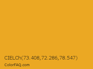 CIELCh 73.408,72.286,78.547 Color is a normal orange color and the nearest color is Fuel Yellow #eca927. Hex code #eba823 and RGB value is rgb(235,168,35). In RGB color space, this color is composed of 92% red, 66% green, 14% blue, In CMYK color space, this color is composed of 0% cyan, 29% magenta, 85% yellow , 8% black , In HSL color space, this color has a hue angle of 40° , 83% saturation and 53% lightness.
