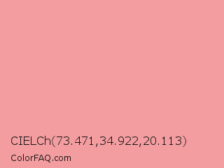 CIELCh 73.471,34.922,20.113 Color is a light red color and the nearest color is Sea Pink #ed989e. Hex code #f49da0 and RGB value is rgb(244,157,160). In RGB color space, this color is composed of 96% red, 62% green, 63% blue, In CMYK color space, this color is composed of 0% cyan, 36% magenta, 34% yellow , 4% black , In HSL color space, this color has a hue angle of 358° , 80% saturation and 79% lightness.