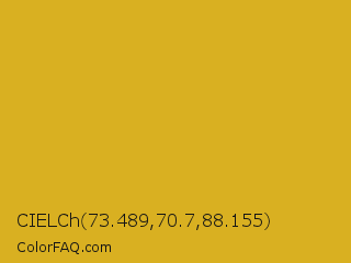 CIELCh 73.489,70.7,88.155 Color is a normal yellow color and the nearest color is Urobilin #e1ad21. Hex code #d9b021 and RGB value is rgb(217,176,33). In RGB color space, this color is composed of 85% red, 69% green, 13% blue, In CMYK color space, this color is composed of 0% cyan, 19% magenta, 85% yellow , 15% black , In HSL color space, this color has a hue angle of 47° , 74% saturation and 49% lightness.