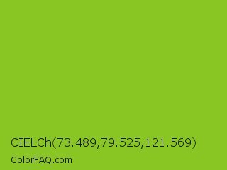 CIELCh 73.489,79.525,121.569 Color is a normal green color and the nearest color is Atlantis #97cd2d. Hex code #8ac623 and RGB value is rgb(138,198,35). In RGB color space, this color is composed of 54% red, 78% green, 14% blue, In CMYK color space, this color is composed of 30% cyan, 0% magenta, 82% yellow , 22% black , In HSL color space, this color has a hue angle of 82° , 70% saturation and 46% lightness.