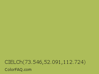 CIELCh 73.546,52.091,112.724 Color is a normal yellow color and the nearest color is Middle Green Yellow #acbf60. Hex code #adbd59 and RGB value is rgb(173,189,89). In RGB color space, this color is composed of 68% red, 74% green, 35% blue, In CMYK color space, this color is composed of 8% cyan, 0% magenta, 53% yellow , 26% black , In HSL color space, this color has a hue angle of 70° , 43% saturation and 55% lightness.