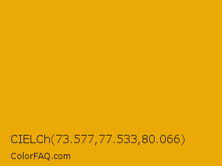 CIELCh 73.577,77.533,80.066 Color is a normal orange color and the nearest color is Gamboge #e49b0f. Hex code #eba905 and RGB value is rgb(235,169,5). In RGB color space, this color is composed of 92% red, 66% green, 2% blue, In CMYK color space, this color is composed of 0% cyan, 28% magenta, 98% yellow , 8% black , In HSL color space, this color has a hue angle of 43° , 96% saturation and 47% lightness.