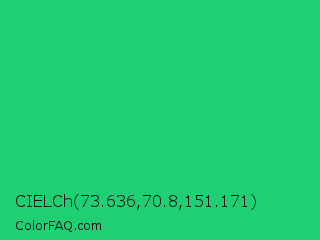 CIELCh 73.636,70.8,151.171 Color is a normal green color and the nearest color is UFO Green #3cd070. Hex code #1ecf73 and RGB value is rgb(30,207,115). In RGB color space, this color is composed of 12% red, 81% green, 45% blue, In CMYK color space, this color is composed of 86% cyan, 0% magenta, 44% yellow , 19% black , In HSL color space, this color has a hue angle of 149° , 75% saturation and 46% lightness.