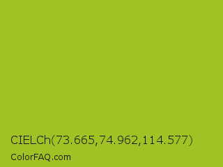 CIELCh 73.665,74.962,114.577 Color is a normal lime color and the nearest color is Atlantis #97cd2d. Hex code #a0c224 and RGB value is rgb(160,194,36). In RGB color space, this color is composed of 63% red, 76% green, 14% blue, In CMYK color space, this color is composed of 18% cyan, 0% magenta, 81% yellow , 24% black , In HSL color space, this color has a hue angle of 73° , 69% saturation and 45% lightness.