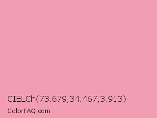 CIELCh 73.679,34.467,3.913 Color is a light red color and the nearest color is Wewak #f19bab. Hex code #f29db2 and RGB value is rgb(242,157,178). In RGB color space, this color is composed of 95% red, 62% green, 70% blue, In CMYK color space, this color is composed of 0% cyan, 35% magenta, 26% yellow , 5% black , In HSL color space, this color has a hue angle of 345° , 77% saturation and 78% lightness.