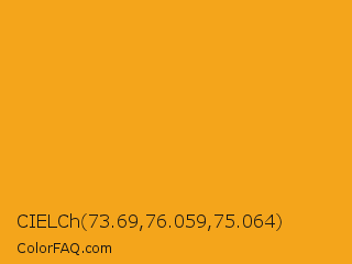 CIELCh 73.69,76.059,75.064 Color is a normal orange color and the nearest color is Buttercup #f3ad16. Hex code #f4a51b and RGB value is rgb(244,165,27). In RGB color space, this color is composed of 96% red, 65% green, 11% blue, In CMYK color space, this color is composed of 0% cyan, 32% magenta, 89% yellow , 4% black , In HSL color space, this color has a hue angle of 38° , 91% saturation and 53% lightness.