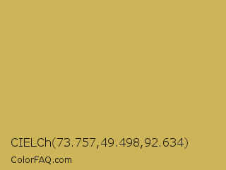 CIELCh 73.757,49.498,92.634 Color is a normal yellow color and the nearest color is Sundance #c9b35b. Hex code #cdb458 and RGB value is rgb(205,180,88). In RGB color space, this color is composed of 80% red, 71% green, 35% blue, In CMYK color space, this color is composed of 0% cyan, 12% magenta, 57% yellow , 20% black , In HSL color space, this color has a hue angle of 47° , 54% saturation and 57% lightness.