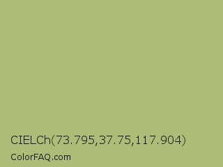 CIELCh 73.795,37.75,117.904 Color is a normal lime color and the nearest color is Olivine #9ab973. Hex code #abbd77 and RGB value is rgb(171,189,119). In RGB color space, this color is composed of 67% red, 74% green, 47% blue, In CMYK color space, this color is composed of 10% cyan, 0% magenta, 37% yellow , 26% black , In HSL color space, this color has a hue angle of 75° , 35% saturation and 60% lightness.