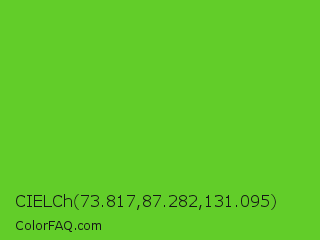 CIELCh 73.817,87.282,131.095 Color is a normal green color and the nearest color is Green RYB #66b032. Hex code #62cd29 and RGB value is rgb(98,205,41). In RGB color space, this color is composed of 38% red, 80% green, 16% blue, In CMYK color space, this color is composed of 52% cyan, 0% magenta, 80% yellow , 20% black , In HSL color space, this color has a hue angle of 99° , 67% saturation and 48% lightness.