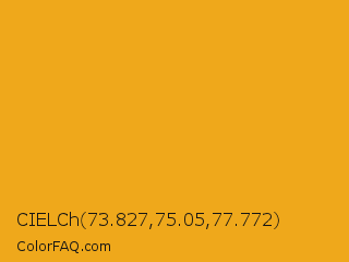 CIELCh 73.827,75.05,77.772 Color is a normal orange color and the nearest color is Buttercup #f3ad16. Hex code #efa81b and RGB value is rgb(239,168,27). In RGB color space, this color is composed of 94% red, 66% green, 11% blue, In CMYK color space, this color is composed of 0% cyan, 30% magenta, 89% yellow , 6% black , In HSL color space, this color has a hue angle of 40° , 87% saturation and 52% lightness.