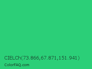 CIELCh 73.866,67.871,151.941 Color is a normal green color and the nearest color is UFO Green #3cd070. Hex code #2bcf78 and RGB value is rgb(43,207,120). In RGB color space, this color is composed of 17% red, 81% green, 47% blue, In CMYK color space, this color is composed of 79% cyan, 0% magenta, 42% yellow , 19% black , In HSL color space, this color has a hue angle of 148° , 66% saturation and 49% lightness.