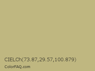CIELCh 73.87,29.57,100.879 Color is a light yellow color and the nearest color is Sand Ecru #c2b280. Hex code #bfb780 and RGB value is rgb(191,183,128). In RGB color space, this color is composed of 75% red, 72% green, 50% blue, In CMYK color space, this color is composed of 0% cyan, 4% magenta, 33% yellow , 25% black , In HSL color space, this color has a hue angle of 52° , 33% saturation and 63% lightness.