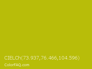 CIELCh 73.937,76.466,104.596 Color is a normal yellow color and the nearest color is La Rioja #b3c110. Hex code #b8bd09 and RGB value is rgb(184,189,9). In RGB color space, this color is composed of 72% red, 74% green, 4% blue, In CMYK color space, this color is composed of 3% cyan, 0% magenta, 95% yellow , 26% black , In HSL color space, this color has a hue angle of 62° , 91% saturation and 39% lightness.