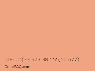 CIELCh 73.973,38.155,50.677 Color is a light orange color and the nearest color is Tonys Pink #e79f8c. Hex code #f0a481 and RGB value is rgb(240,164,129). In RGB color space, this color is composed of 94% red, 64% green, 51% blue, In CMYK color space, this color is composed of 0% cyan, 32% magenta, 46% yellow , 6% black , In HSL color space, this color has a hue angle of 19° , 79% saturation and 72% lightness.