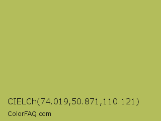 CIELCh 74.019,50.871,110.121 Color is a normal yellow color and the nearest color is Celery #b8c25d. Hex code #b3bd5b and RGB value is rgb(179,189,91). In RGB color space, this color is composed of 70% red, 74% green, 36% blue, In CMYK color space, this color is composed of 5% cyan, 0% magenta, 52% yellow , 26% black , In HSL color space, this color has a hue angle of 66° , 43% saturation and 55% lightness.
