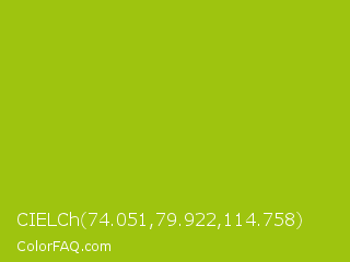 CIELCh 74.051,79.922,114.758 Color is a normal lime color and the nearest color is Citrus #a1c50a. Hex code #9ec40f and RGB value is rgb(158,196,15). In RGB color space, this color is composed of 62% red, 77% green, 6% blue, In CMYK color space, this color is composed of 19% cyan, 0% magenta, 92% yellow , 23% black , In HSL color space, this color has a hue angle of 73° , 86% saturation and 41% lightness.