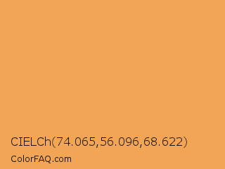 CIELCh 74.065,56.096,68.622 Color is a light orange color and the nearest color is Sandy Brown #f4a460. Hex code #f2a655 and RGB value is rgb(242,166,85). In RGB color space, this color is composed of 95% red, 65% green, 33% blue, In CMYK color space, this color is composed of 0% cyan, 31% magenta, 65% yellow , 5% black , In HSL color space, this color has a hue angle of 31° , 86% saturation and 64% lightness.