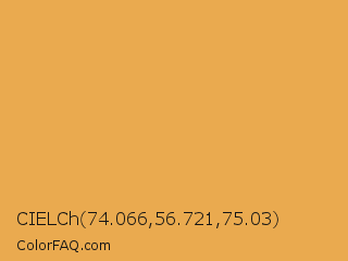 CIELCh 74.066,56.721,75.03 Color is a light orange color and the nearest color is Sunray #e3ab57. Hex code #eaaa4f and RGB value is rgb(234,170,79). In RGB color space, this color is composed of 92% red, 67% green, 31% blue, In CMYK color space, this color is composed of 0% cyan, 27% magenta, 66% yellow , 8% black , In HSL color space, this color has a hue angle of 35° , 79% saturation and 61% lightness.