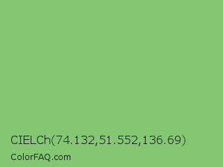 CIELCh 74.132,51.552,136.69 Color is a light green color and the nearest color is Pistachio #93c572. Hex code #83c773 and RGB value is rgb(131,199,115). In RGB color space, this color is composed of 51% red, 78% green, 45% blue, In CMYK color space, this color is composed of 34% cyan, 0% magenta, 42% yellow , 22% black , In HSL color space, this color has a hue angle of 109° , 43% saturation and 62% lightness.