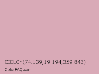 CIELCh 74.139,19.194,359.843 Color is a light rose color and the nearest color is Pale Chestnut #ddadaf. Hex code #d9aab7 and RGB value is rgb(217,170,183). In RGB color space, this color is composed of 85% red, 67% green, 72% blue, In CMYK color space, this color is composed of 0% cyan, 22% magenta, 16% yellow , 15% black , In HSL color space, this color has a hue angle of 343° , 38% saturation and 76% lightness.