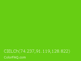 CIELCh 74.237,91.119,128.822 Color is a normal green color and the nearest color is Lima #76bd17. Hex code #67ce13 and RGB value is rgb(103,206,19). In RGB color space, this color is composed of 40% red, 81% green, 7% blue, In CMYK color space, this color is composed of 50% cyan, 0% magenta, 91% yellow , 19% black , In HSL color space, this color has a hue angle of 93° , 83% saturation and 44% lightness.