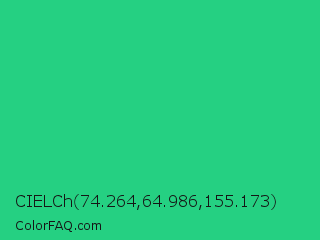 CIELCh 74.264,64.986,155.173 Color is a normal green color and the nearest color is Shamrock #33cc99. Hex code #25d082 and RGB value is rgb(37,208,130). In RGB color space, this color is composed of 15% red, 82% green, 51% blue, In CMYK color space, this color is composed of 82% cyan, 0% magenta, 38% yellow , 18% black , In HSL color space, this color has a hue angle of 153° , 70% saturation and 48% lightness.