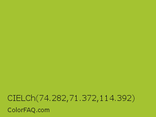 CIELCh 74.282,71.372,114.392 Color is a normal lime color and the nearest color is Android Green #a4c639. Hex code #a4c331 and RGB value is rgb(164,195,49). In RGB color space, this color is composed of 64% red, 76% green, 19% blue, In CMYK color space, this color is composed of 16% cyan, 0% magenta, 75% yellow , 24% black , In HSL color space, this color has a hue angle of 73° , 60% saturation and 48% lightness.
