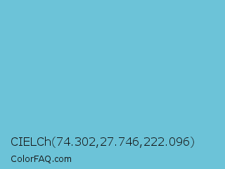 CIELCh 74.302,27.746,222.096 Color is a light cyan color and the nearest color is Viking #64ccdb. Hex code #6cc3d8 and RGB value is rgb(108,195,216). In RGB color space, this color is composed of 42% red, 76% green, 85% blue, In CMYK color space, this color is composed of 50% cyan, 10% magenta, 0% yellow , 15% black , In HSL color space, this color has a hue angle of 192° , 58% saturation and 64% lightness.