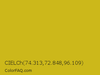 CIELCh 74.313,72.848,96.109 Color is a normal yellow color and the nearest color is Gold Tips #deba13. Hex code #ccb81a and RGB value is rgb(204,184,26). In RGB color space, this color is composed of 80% red, 72% green, 10% blue, In CMYK color space, this color is composed of 0% cyan, 10% magenta, 87% yellow , 20% black , In HSL color space, this color has a hue angle of 53° , 77% saturation and 45% lightness.