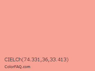 CIELCh 74.331,36,33.413 Color is a light red color and the nearest color is Mona Lisa #ffa194. Hex code #f6a194 and RGB value is rgb(246,161,148). In RGB color space, this color is composed of 96% red, 63% green, 58% blue, In CMYK color space, this color is composed of 0% cyan, 35% magenta, 40% yellow , 4% black , In HSL color space, this color has a hue angle of 8° , 84% saturation and 77% lightness.